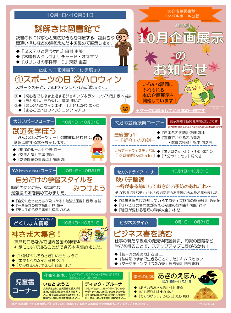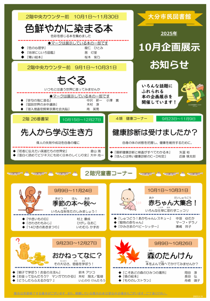 大分市民図書館では、月替わりで時事や地域の問題解決等
