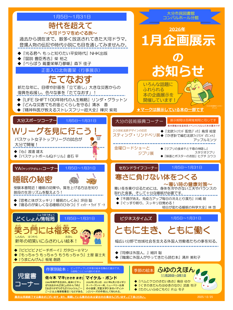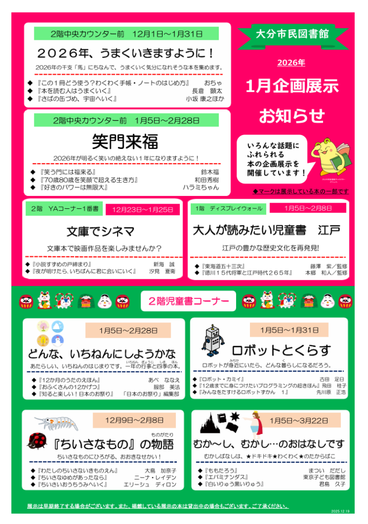 大分市民図書館では、月替わりで時事や地域の問題解決等